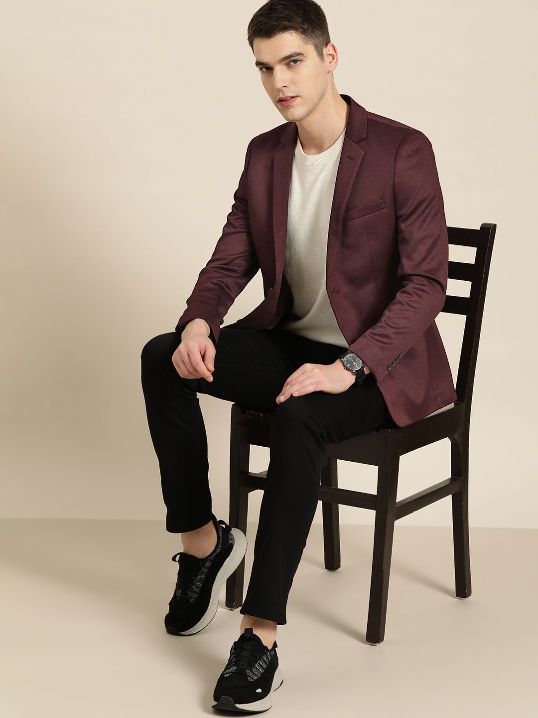 INVICTUS Men Maroon Solid Slim Fit Single Breasted Blazer