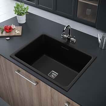 Johnson Qubix Black Quartz Kitchen Sink with Waste Coupling | 24"x 18"x 9.5" | 5 Years Warranty | Durable and Stylish Quartz Sink for Modern Kitchens ...