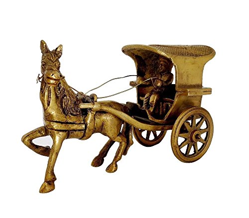 Kartique Brass Antique Running Horse Cart Tanga Rath Showpiece Office Home Table Decor Statue Murti Idol for Good Luck Diwali Gift Length 6 Inch