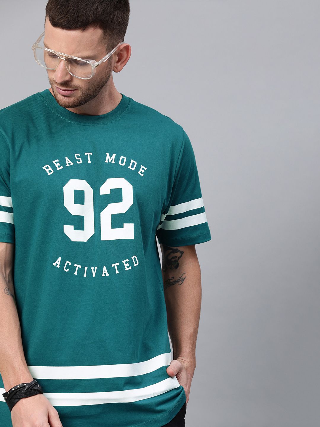 Kook N Keech Men Green Varsity Printed Round Neck Pure Cotton Oversized T-shirt