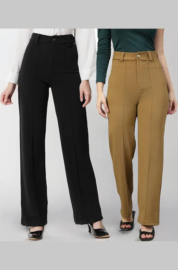 KOTTY Women Regular Fit Multicolor Viscose Rayon Trousers