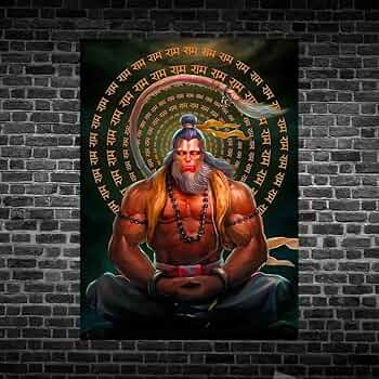 Kreatyx Hanuman Ji Meditate Ram Ji Name Metal Poster - Premium Spiritual Wall Decor Poster - High-Definition, Glossy Finish Poster - Wall Art Ideal fo...