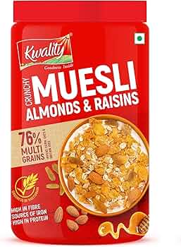 Price History ofKwality Crunchy Muesli- Almond, Raisins and Honey- Goodness of Multigrain, High in Fibre Source of Vitamin, Iron and Protein (1Kg Jar)