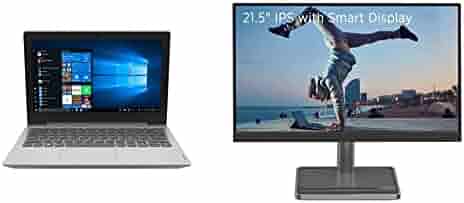 Lenovo IdeaPad Slim 1 Intel Celeron N4020 11.6'' (29.46cm) HD Thin & Light Laptop (4GB/256GB SSD/Windows 11/Office 2021/3months Game Pass/Platinum Grey/1.2Kg), 81VT009UIN + 22" IPS FHD Monitor