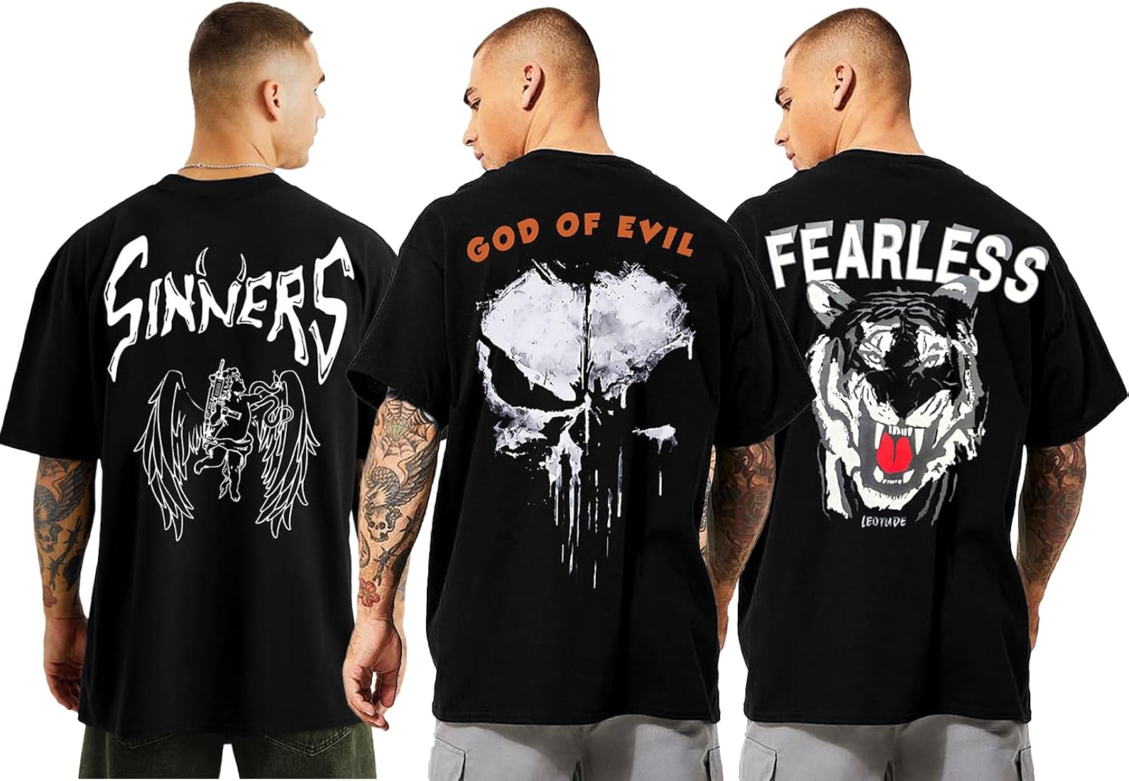 LEOTUDE Men's Oversized Tshirt Drop Shoulder Colorful Printed Combos (Pack of 3)