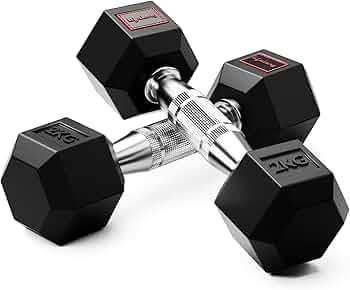 Lifelong Rubber Coated Hexa Dumbbell Set of 2 (2Kg x 2) for Home Gym  Weights for Men & Women  Exercise Equipment (Black)