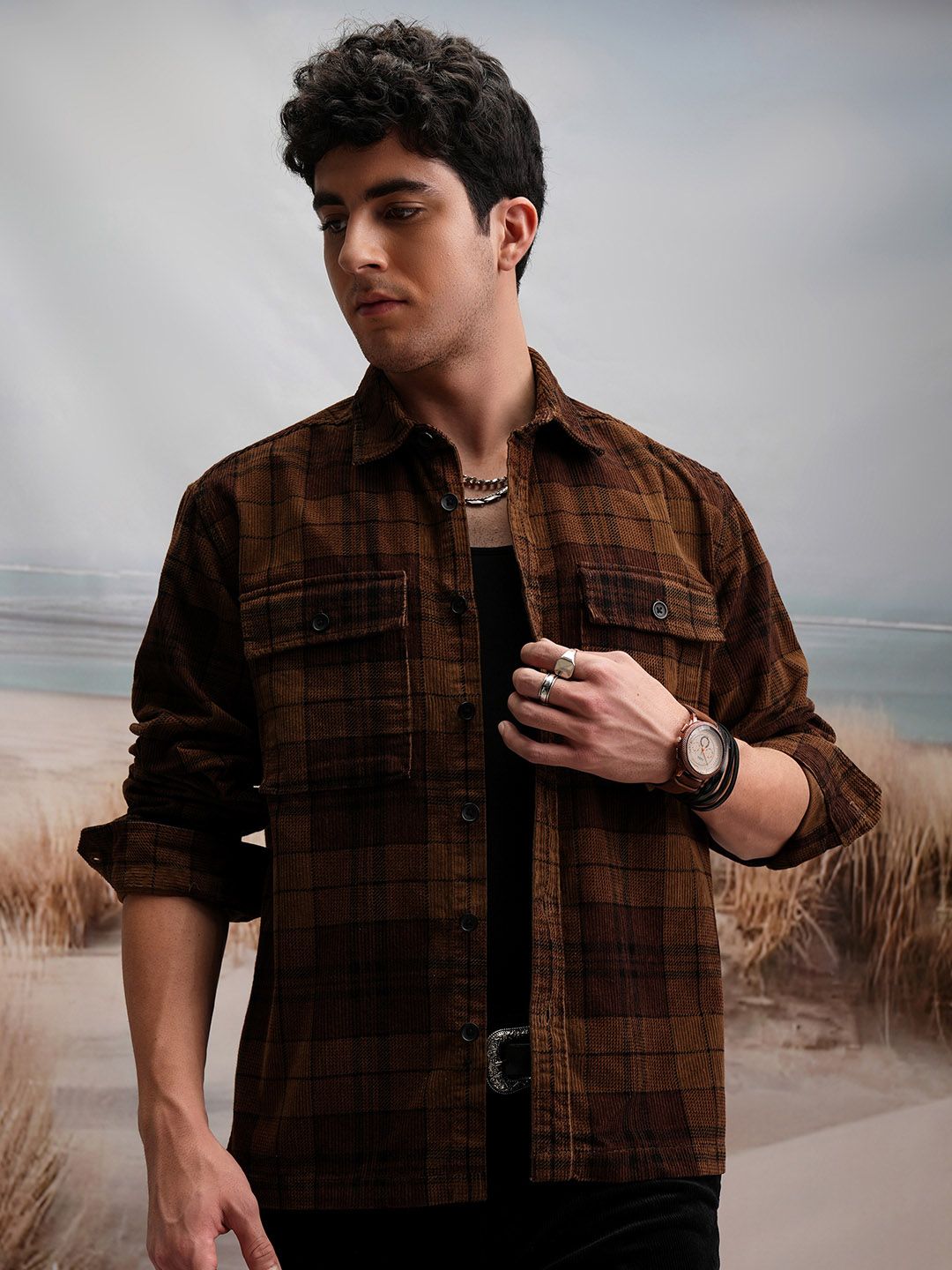LOCOMOTIVE Oversized Premium Corduroy Checked Utility Pocket Cotton Flannel Over Shirt