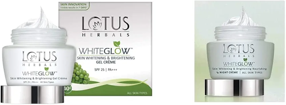 Lotus Herbals Whiteglow Skin Whitening & Brightening Gel Cream, SPF-25, 40g & White Glow Skin Whitening & Brightening Nourishing Night Creme, 60g