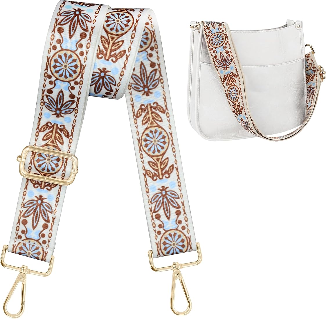 Lyrovo Adjustable Purse Strap Replacement for Women, 1.5" Wide Crossbody Shoulder Strap Boho Handbag Strap (Rattan White)