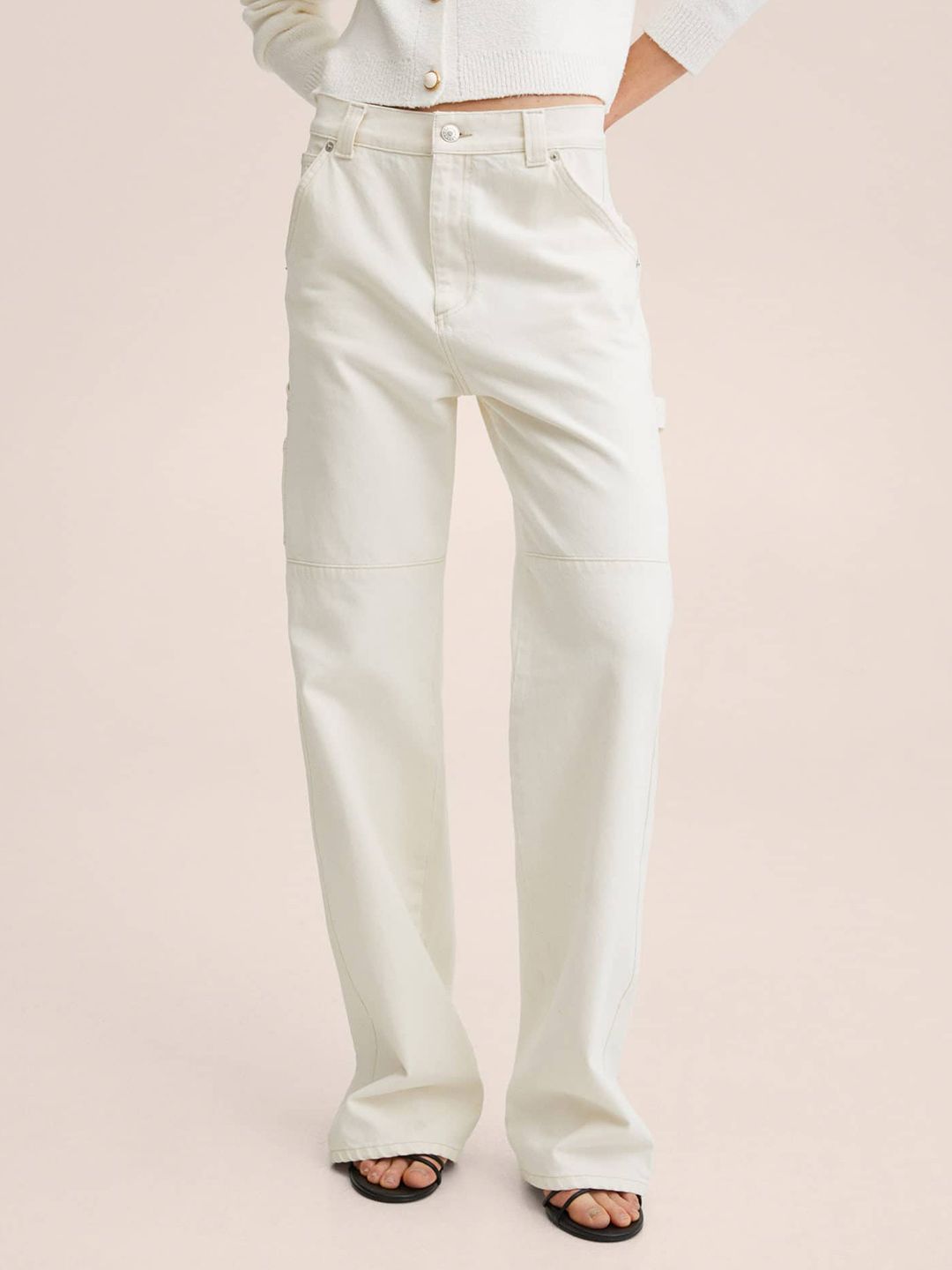 MANGO Women White Straight Fit High-Rise Pocket Cargo Jeans