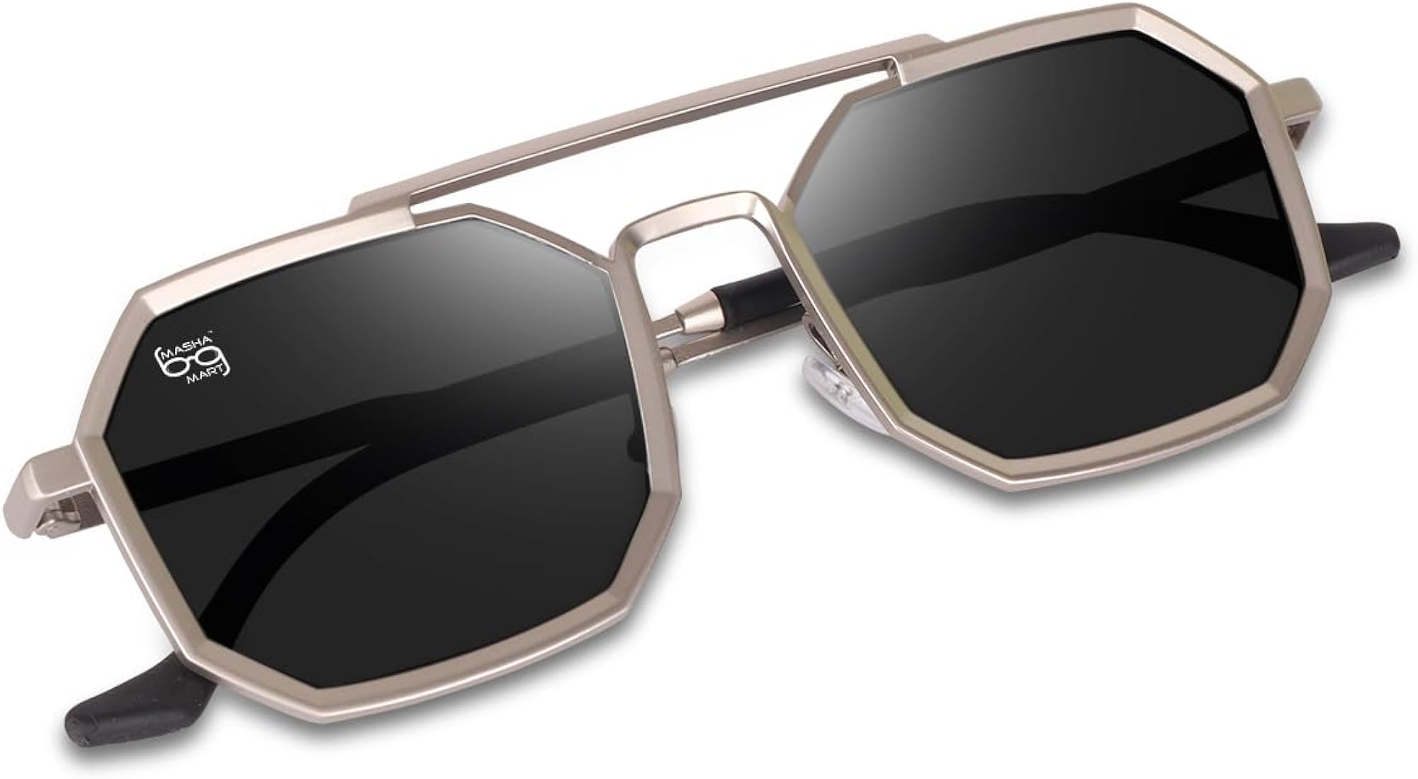 mashamart Hexagonal Sunglasses for Men & Women,Polarized Lenses, Trending, Stylish & Durable Metal Frame Vintage Sunglasses With UV 400 Protection,Bla...