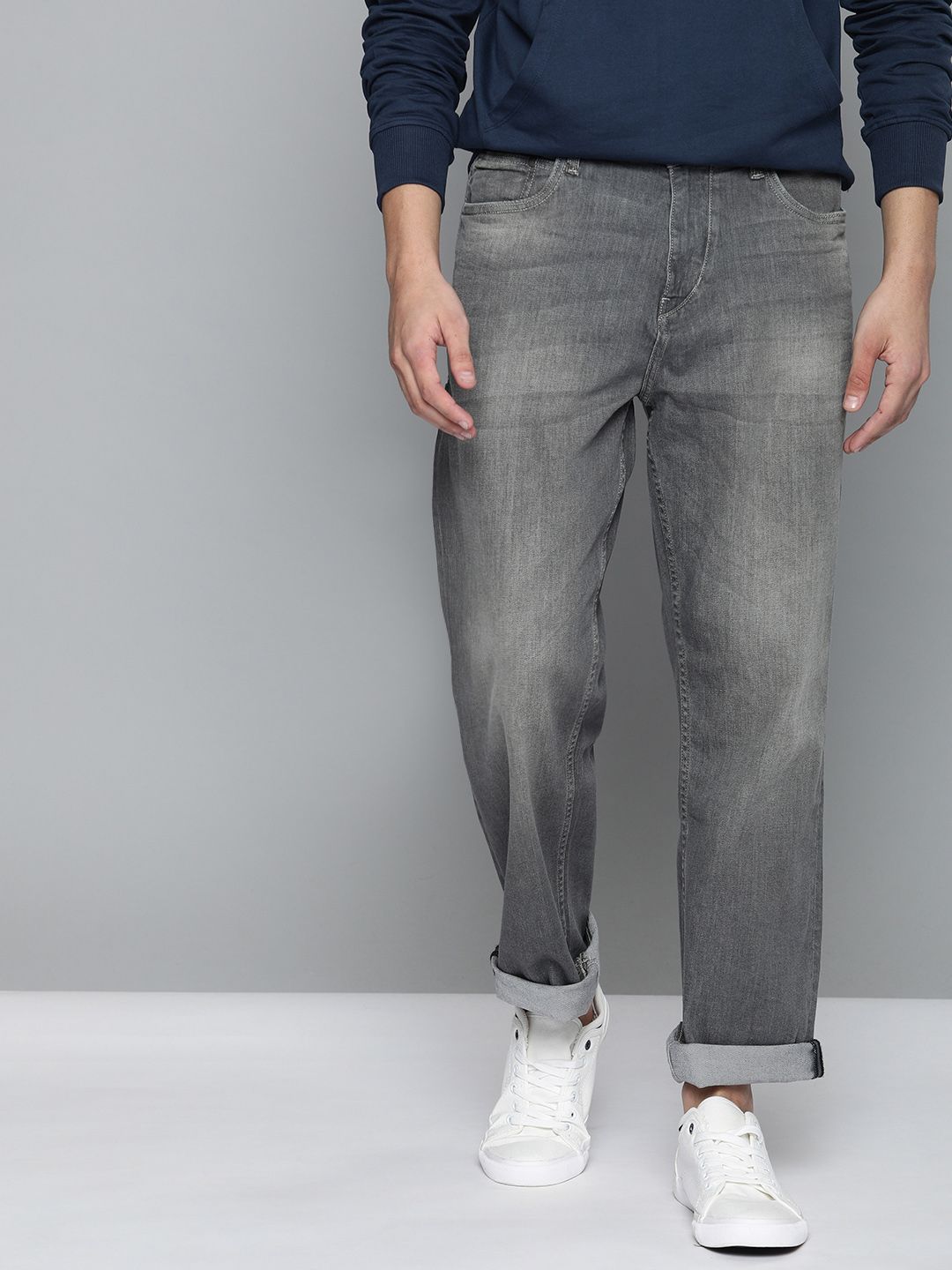 Mast & Harbour Men Grey Straight Fit Mid-Rise Clean Look Stretchable Jeans