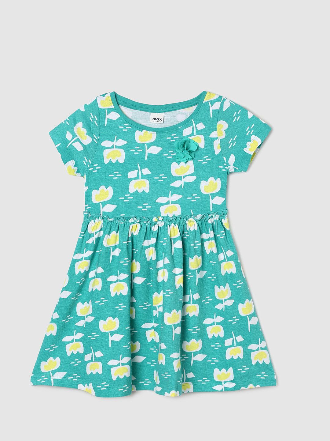 max Girls Floral Printed Fit & Flare Cotton Dress