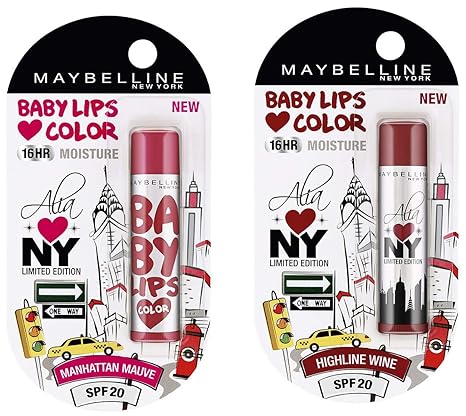 Maybelline Baby Lips Alia Loves New York, Manhattan Mauve, 4g And Maybelline Baby Lips Alia Loves New York, Highline Wine, 4g