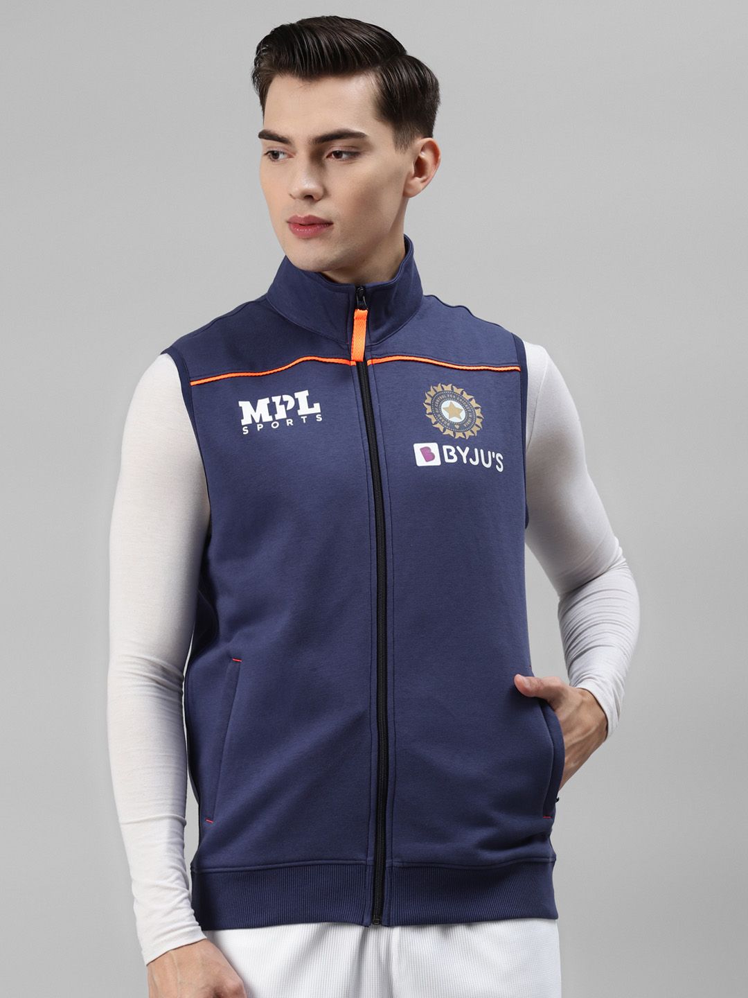 MPL Sports Men Navy Blue Official Team India Fan Vest Jacket