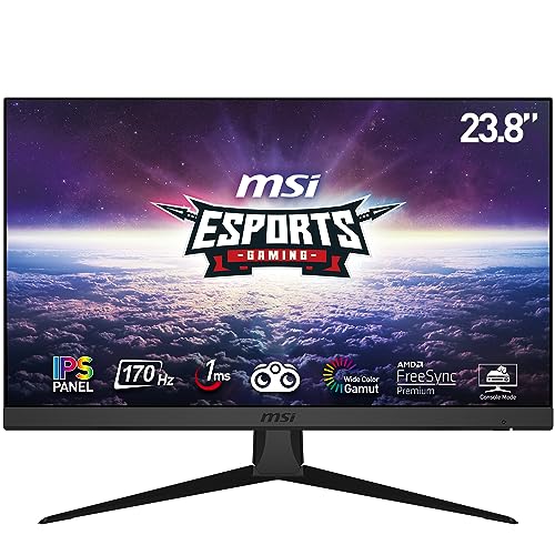 MSI G2412 Esports Gaming Monitor | 23.8 Inch FullHD (1920x1080) | 170Hz Refresh Rate | 1ms | Wide Color Gamut | AMD FreeSync Premium | Anti Glare, Less Blue Light | IPS Panel | VESA Mount | Black
