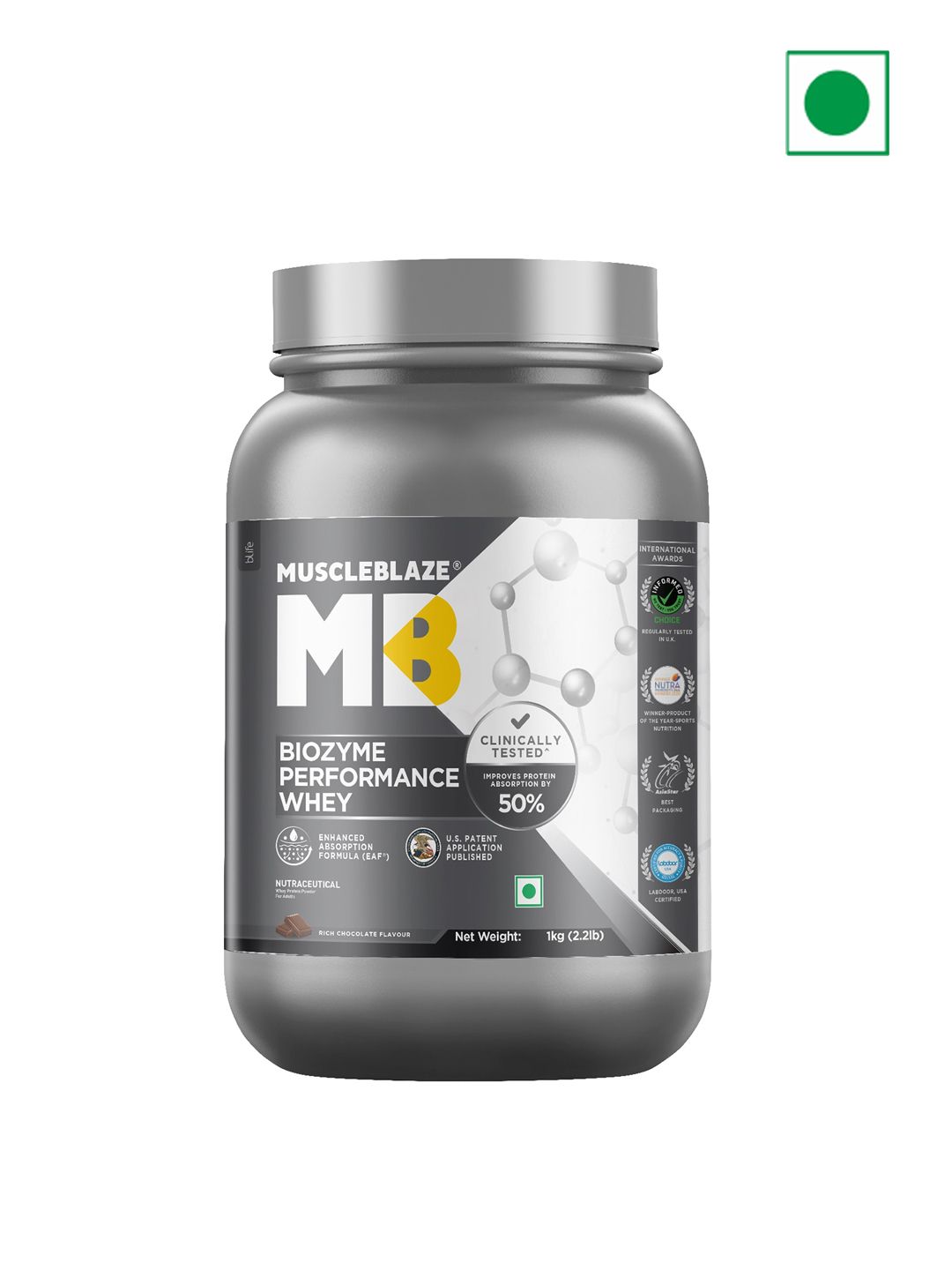 MuscleBlaze Biozyme Performance Whey Protein Rich Choclate Flavour-1kg
