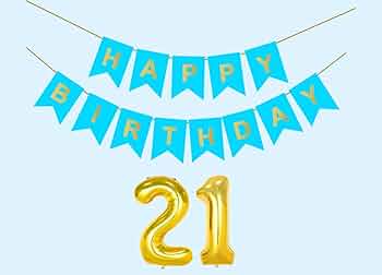 Mystic Toy Store 21st Sky Blue Happy Birthday Decoration Kit for 21 year Old Boys Girls Women with Number Twenty-one Party Decorations Decor Celebrati...