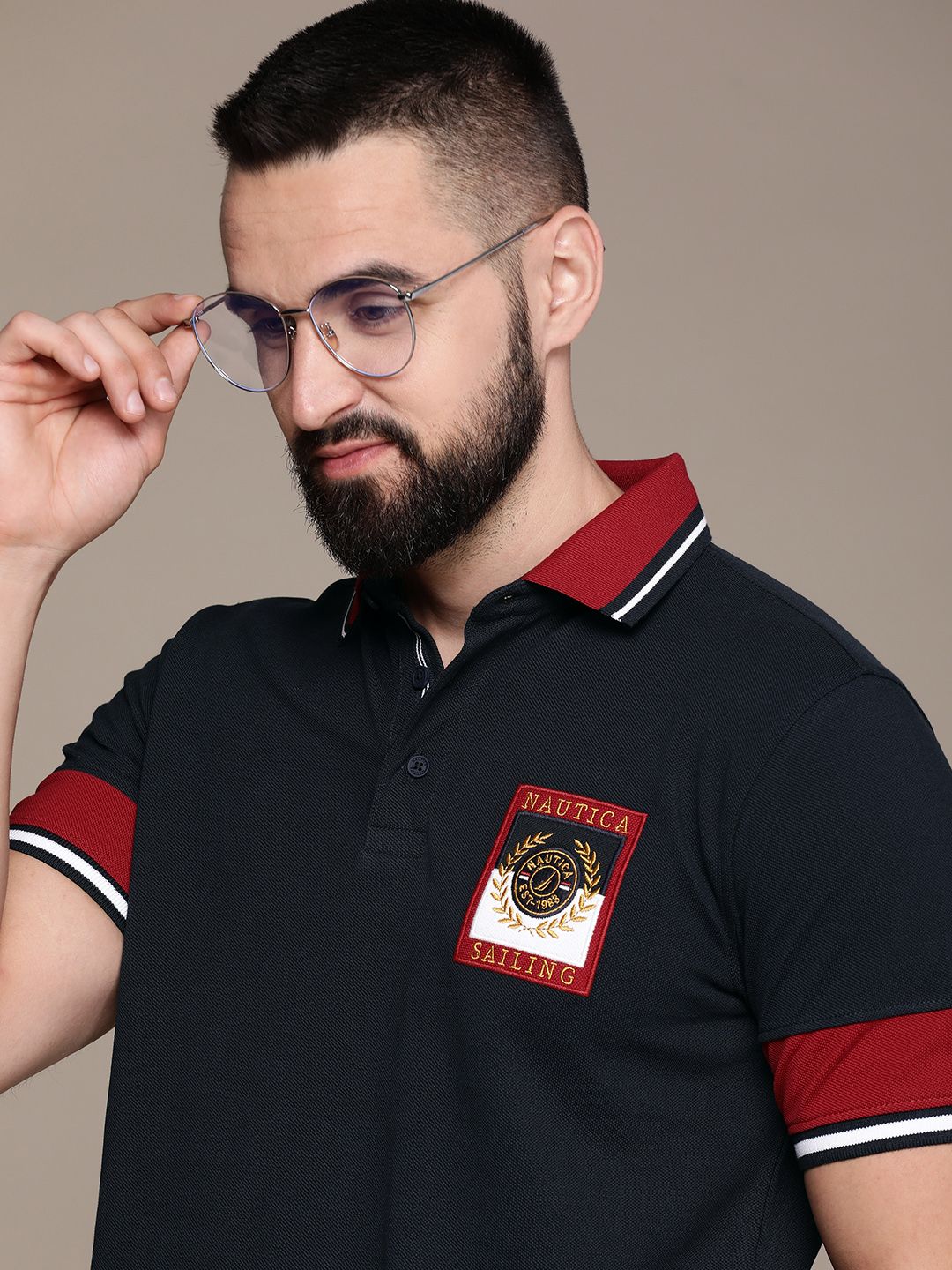 Nautica Brand Logo Embroidered Polo Collar Pure Cotton T-shirt