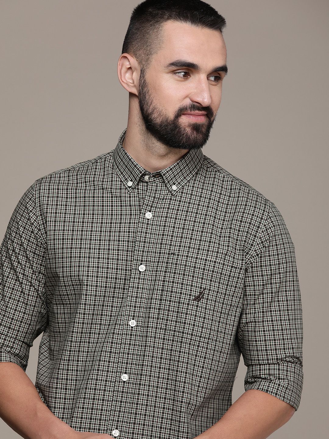 Nautica Pure Cotton Classic Opaque Checked Casual Shirt