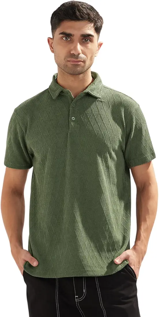 NOBERO Men's Self Design Regular Fit Polo Shirt