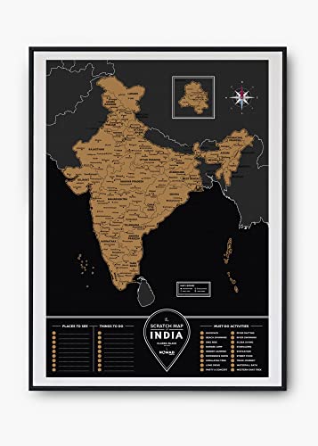 Nomad Gifts Classic Black Edition - India Travel Scratch Map | Printed on Durable Laminated Sheet w/Shining Scratch Layer