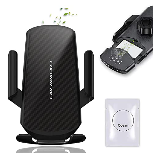 NOYMI Car Mobile Holder and Wireless Charger | Car Phone Holder | Adjustable, Solid, Durable | Car Mobile Holder fits on Air Vent | Heavy Phones Friendly with Aromatherapy Refillable Tablet Black