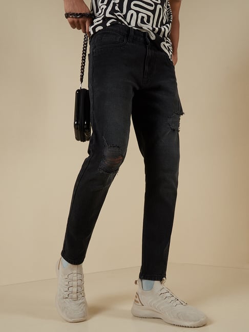 Nuon by Westside Charcoal Rodeo Carrot Fit Distressed Jeans