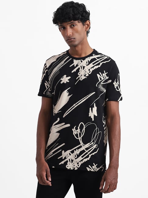 Nuon by Westside Ola Black Printed Slim Fit T-Shirt