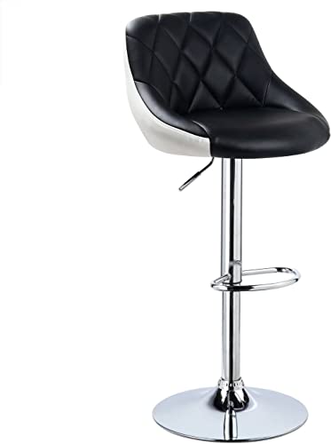 Oakcraft Louver Bar Chair for Breakfast Dining Stool Kitchen Island Counter Bar Stools Leatherette Exterior, Adjustable Swivel Chrome Gas Lift, Steel Footrest & Base (Black White)
