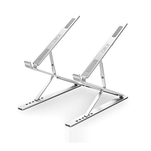 Oboe Aluminium Double Layer Laptop Stand Lightweight Foldable Design Portable Mini Laptop PC Tablet Holder Anti-Slip Design Mounting Bracket (Silver)