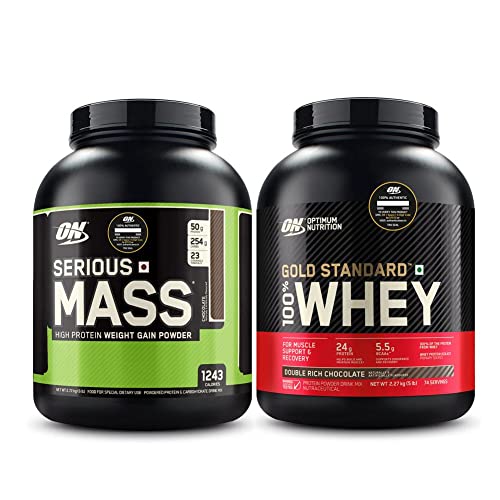 Optimum Nutrition (ON) Gold Standard 100% Whey Protein Powder -5 lbs, 2.27 Kg (Double Rich Chocolate) + Serious Mass Weight Gainer Powder -6 lbs, 2.72