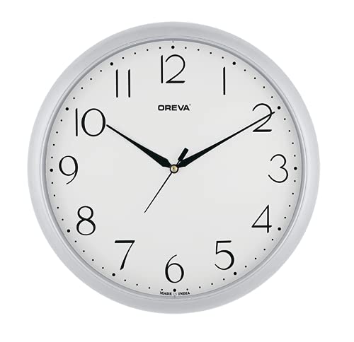 OREVA Plastic Round Shape Simple Wall Clock (28 x 3.6 x 28 cm, Silver, AQ-1937 DX)