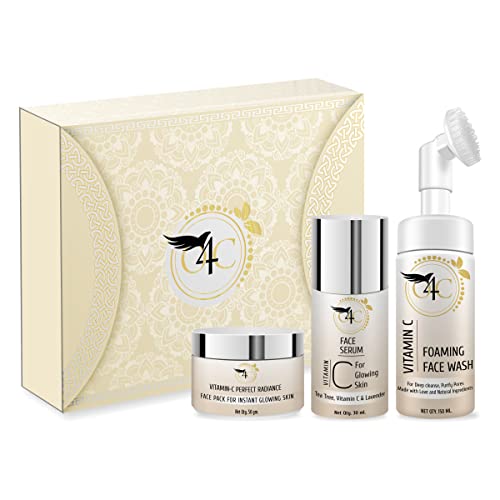 Organic 4 Care vitamin c skin care facial kit consists of vitamin c face wash, vitamin c serum & detan face pack for glowing skin-150 ml, 50 ml, 50 gm each