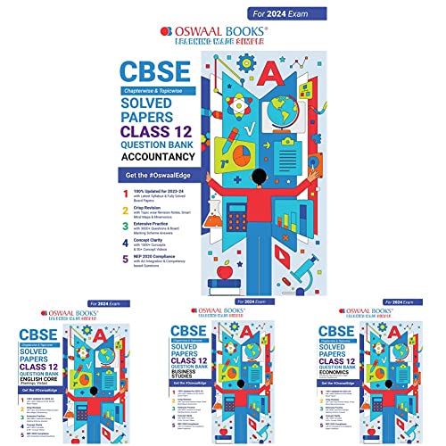 Oswaal CBSE Accountancy, English Core, Business Studies & Economics Class 12 Question Bank (Set of 4 Books) (For 2024 Board Exam)