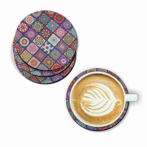 PAPER PLANE DESIGN Handmade Mandala Pattern Wooden Coaster Set for Home Kitchen, Office Desk (Set of 6, 4 inch) (Design-1)
