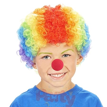 Party Hour Funny Parties Multicolor Malinga Wig Combo Afro Curli Hair Halloween Cosplay Party Wig Holi Celebration Props with Joker Nose Props Propz W