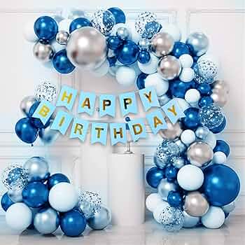 Party Propz Birthday Decoration Set - 52 Pcs for Kids, Adults, Boy, Husband, Men | Blue, White, Silver Balloons, Arch Tape, Banner (Cardstock)