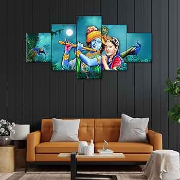 perpetual Radha Krishna 3D Scenery Wall Painting Set of 5 | Painting For Wall Decoration | Large Framed Wall Decor for Living Room, Office (75 x 43 cm...
