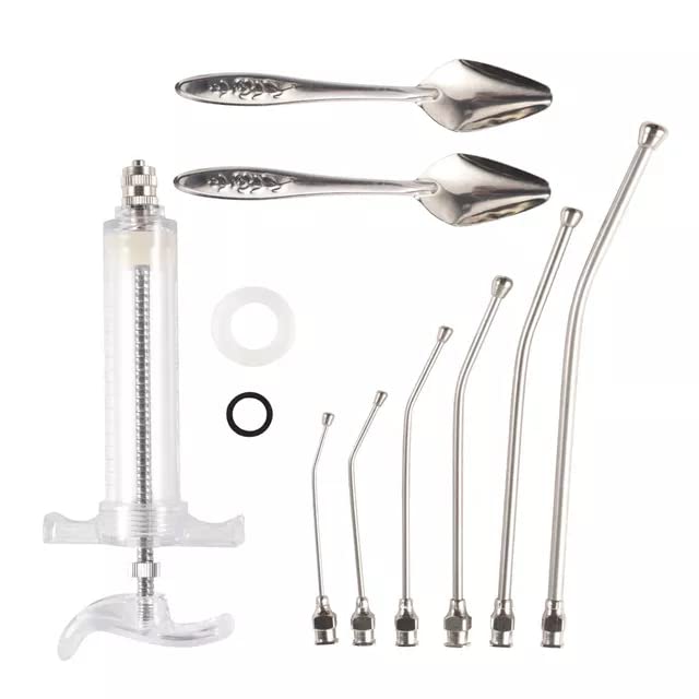 Pets Wizard - Transparent Hand Feeding Syringe with 6 Stainless Steel Needle for Birds (20ml) and 2 Handfeeding Spoons (20 ML Syringe with 6 Types of Needle and Spoon)