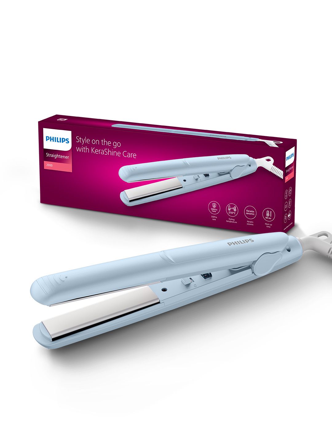 Philips BHS264/00 SilkProtect On The Go Hair Straightener with KeraShine - Light Blue