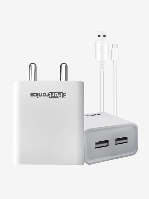 Portronics Adapto 66 POR-1066 2.4A Dual USB Ports Charging Adapter (White)