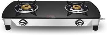 Preethi Bluflame Streak Plus Glass Top 2 Burner Gas Stove, with Jumbo Burner, Manual Ignition, Black