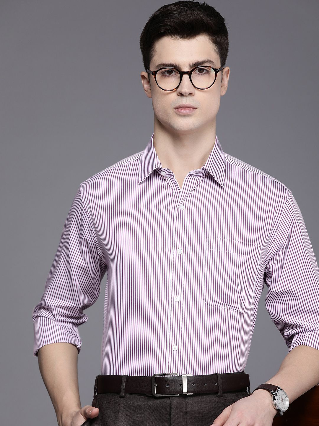 Raymond Pure Cotton Slim Fit Cutaway Collar Full Sleeves Striped Formal Shirt
