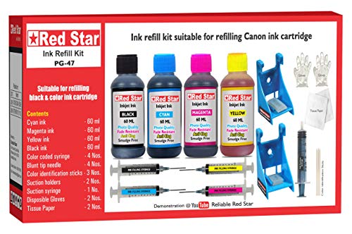 Red Star ink refill kit combo pack suitable for Canon Pixma PG 47, 88, 745, 810 black & CL 57, 98, 746, 811 color ink cartridge with 240 ml fully