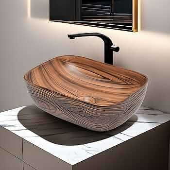 Price History ofREMOTION Wooden Base Design Table Top Vessel Sink/Over Counter Wash Basin/Counter Top Wash Basin for Bathroom Decor & Living Rooms (18 X 13 X 5 Inch) ...