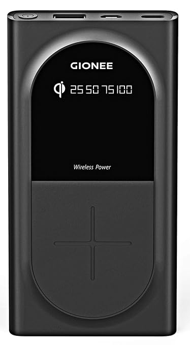 (Renewed) Gionee 10000mAh Li-Polymer Wireless Charging Power Bank with USB Port and Power Meter(Fast Charging, 12W) PB10K1WL (Black)