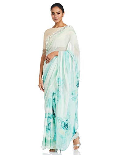 RIVER X SUNEET VARMA Women's Printed Georgette Saree with Splatter Sequin Detail & Blouse Piece
