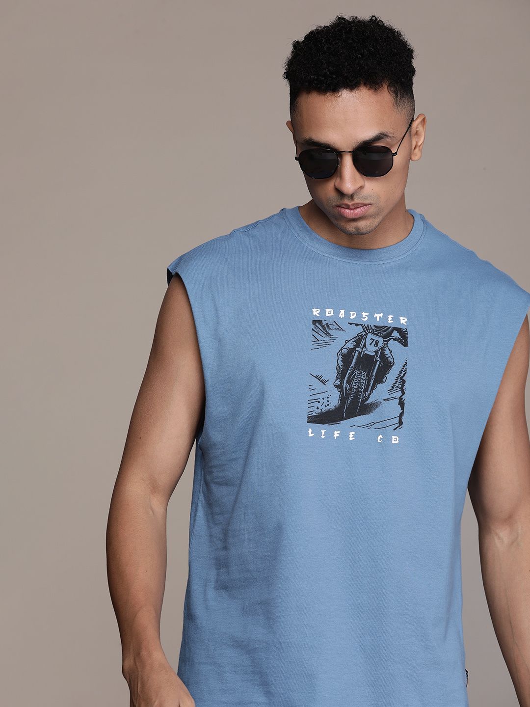 Roadster Men Brand Logo & Graphic Print Pure Cotton Relaxed Fit Sleeveless T-shirt
