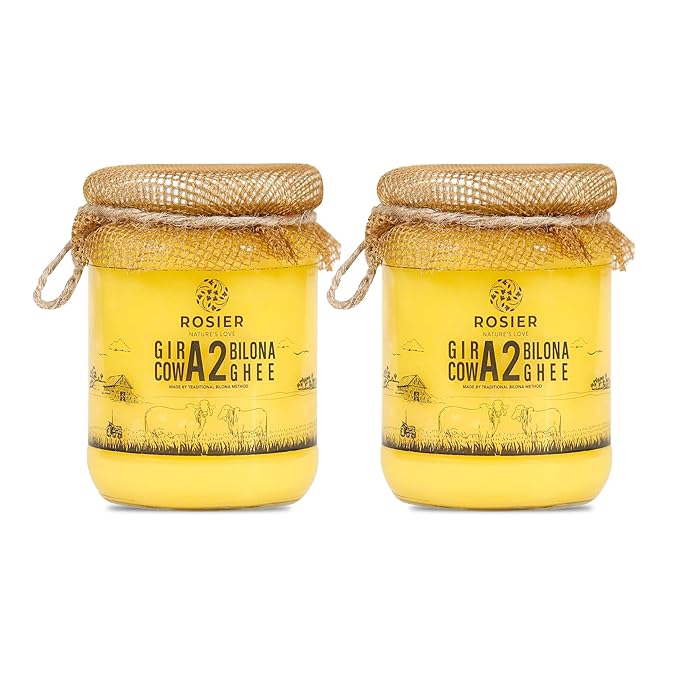 ROSIER A2 Gir Cow Ghee | (500 ml x 2 Glass Bottle) | Traditional Bilona Method A2 Gir Cow Ghee | Curd-Churned | Grassfed, Pure and Healthy Desi Cow Ghee